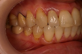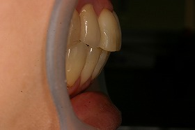 ご覧の症例は前歯のねじれ出っ歯を矯正治療でキレイにし、 さらに、奥歯のぎらつく銀歯をセラミックにつめなおしたケースです。